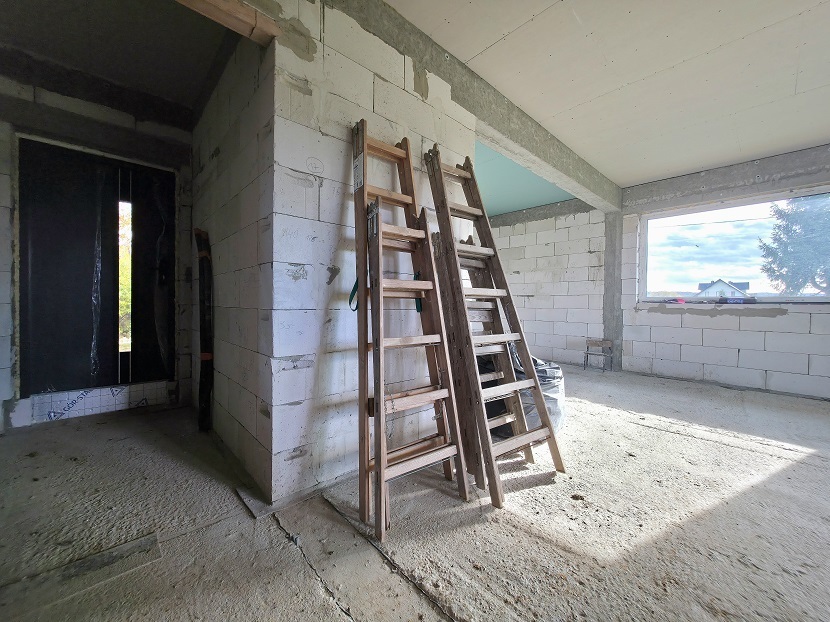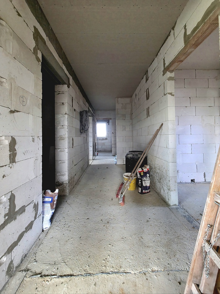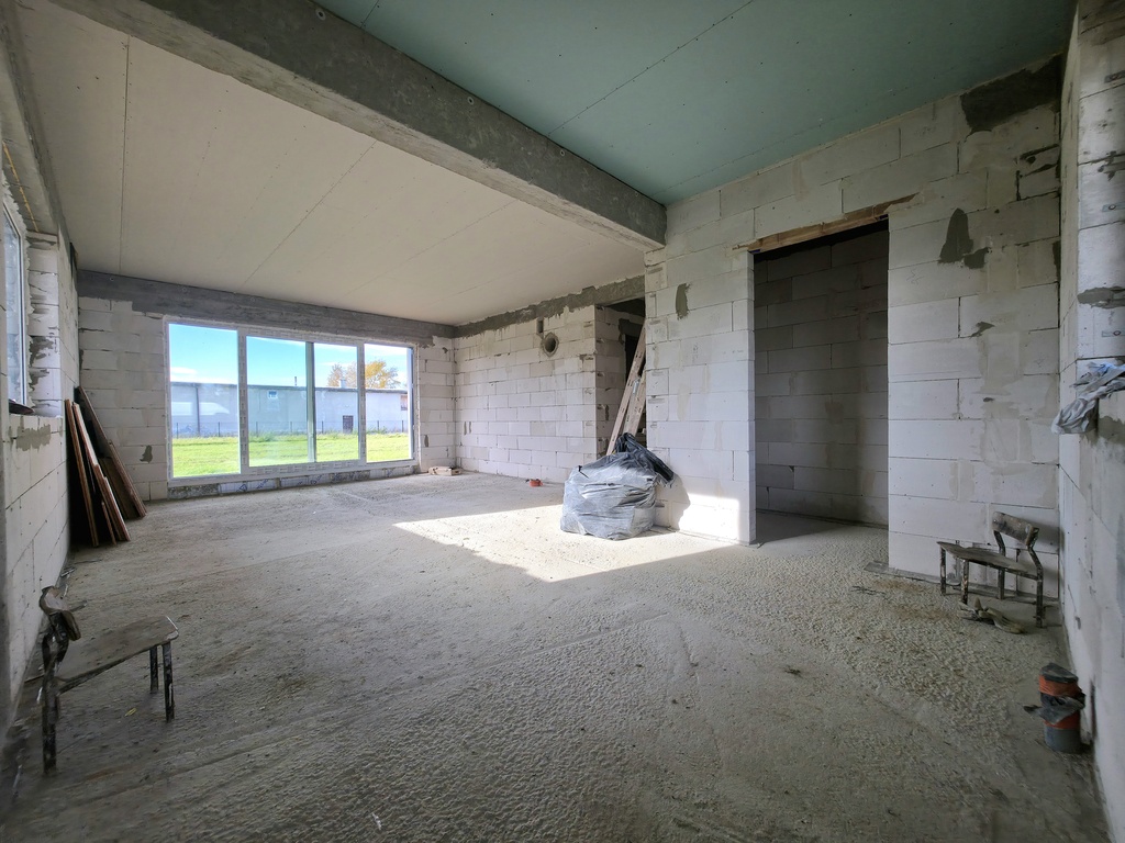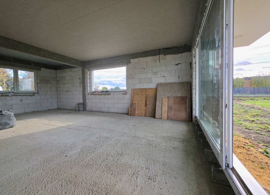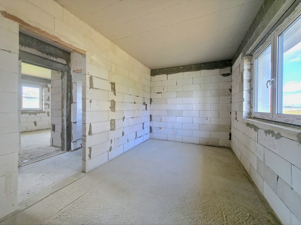 Budynek jest w stanie surowym wewnątrz, co daje możliwość własnej aranżacji i wykończenia według indywidualnych preferencji.