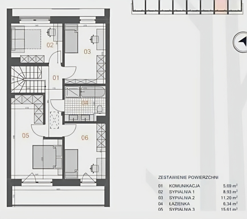 - Około 60 m² powierzchni całkowitej